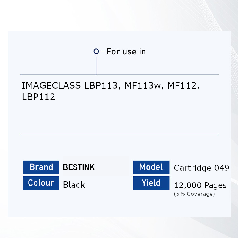 Bestink 047 049 Black Toner & Drum Cartridge for use in LBP113 MF113 CRG047 CRG049